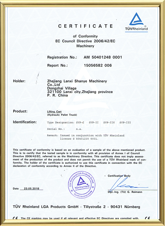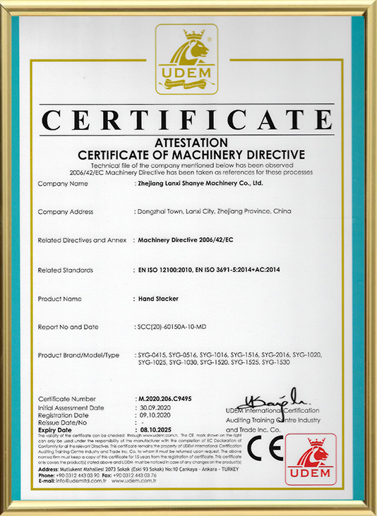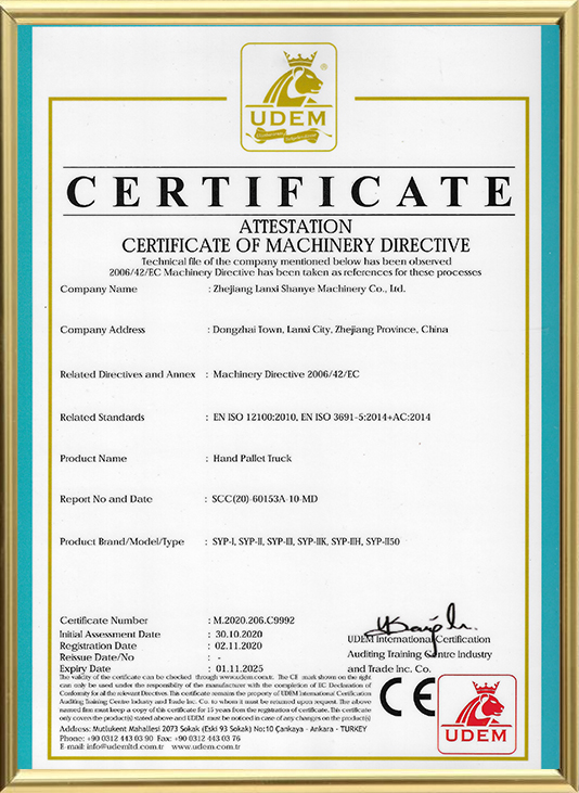 公司位于浙江省蘭溪市香溪工業(yè)區(qū),是一家專業(yè)生產(chǎn)手動液壓搬運車,手動液壓堆高車,手動液壓平臺車,半電動液壓堆高車,全電動液壓堆高車等物流設(shè)備的生產(chǎn)型企業(yè),在職員工200多人,占地56余畝,擁有資產(chǎn)6000多萬元,年產(chǎn)手動液壓搬運車100000臺,手動液壓堆高車40000臺,電動系列7000臺等,山野機械所生產(chǎn)的物流設(shè)備擁有很強的市場競爭力,產(chǎn)品暢銷加拿大,美國,澳大利亞,俄羅斯,南美洲等30多個國家和地區(qū),在國內(nèi)市場擁有一大批忠誠的客戶,企業(yè)在北京、上海、廣州、四川、重慶等地區(qū)開設(shè)“山野”品牌專賣店。公司已通過ISO9001:2008管理體系認證,產(chǎn)品均獲得了歐盟CE,TUV和GS認證,產(chǎn)品廣泛運用于現(xiàn)代物流的各種場所,大大提高了工作效率,獲得國內(nèi)外客戶的一致好評。