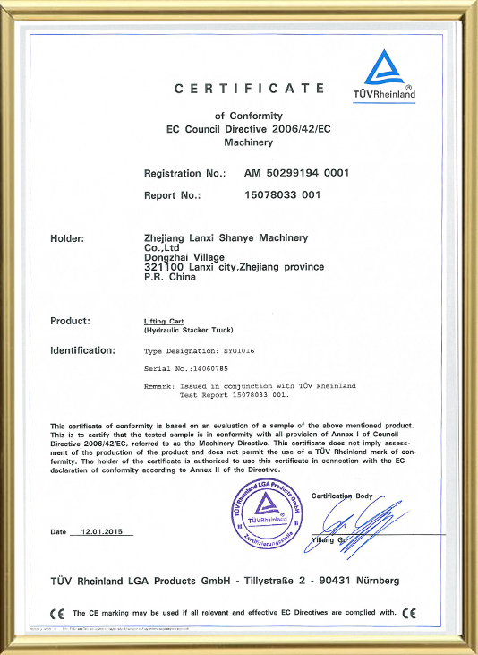 公司已通過ISO9001:2008管理體系認證,產(chǎn)品均獲得歐盟CE、TUV、GS的認證。產(chǎn)品廣泛應(yīng)用于現(xiàn)代物流的各個場所,大大提高了企業(yè)的工作效率,贏得了國內(nèi)外客戶的一致好評。